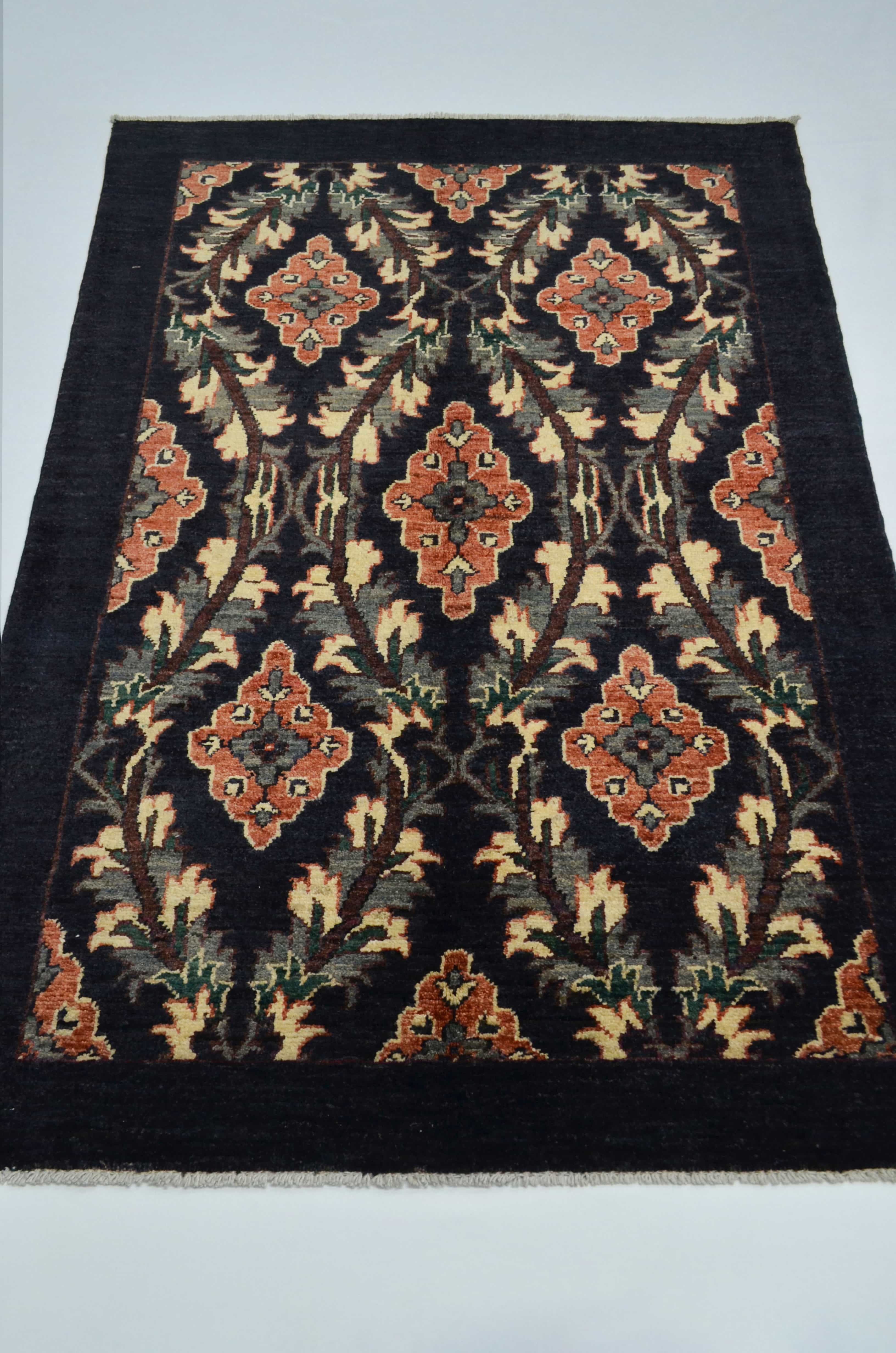 Siyah zemin üzerinde kırmızı motiflerle öne çıkan bu klasik tasarım, bulunduğu mekânda güçlü ve sofistike bir duruş sergiler. 99x153 cm ölçüsüyle koridor, oturma odası veya özel köşeler için idealdir.